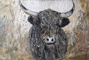 2023Ëncaustic op hout met oud metaal en onderdelen in baklijst