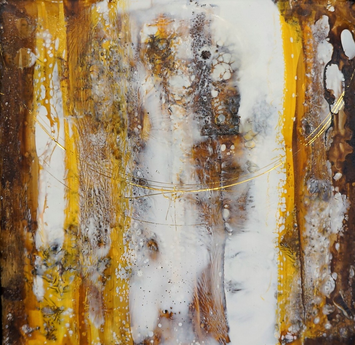 Bijenwas schilderij met inkt