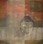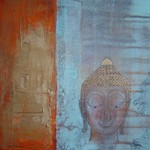 Boeddha warm koud met losse goud pigmenten in de acryl verf