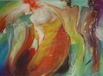2008Aquarel gem techniek van vrouwen door het vuur. Gemaakt op Evia tijdens de bosbranden daar.